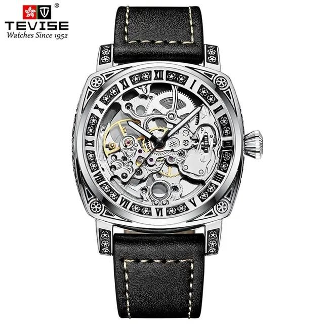TEVISE T894 Watch Waterproof Automatic Hollow Out 894 Unique Skeleton Dial Genuine Leather Manual Mechanical Men's Male Watches