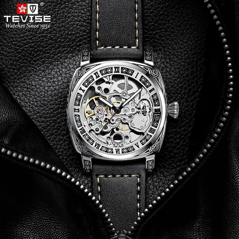 TEVISE T894 Watch Waterproof Automatic Hollow Out 894 Unique Skeleton Dial Genuine Leather Manual Mechanical Men’s Male Watches